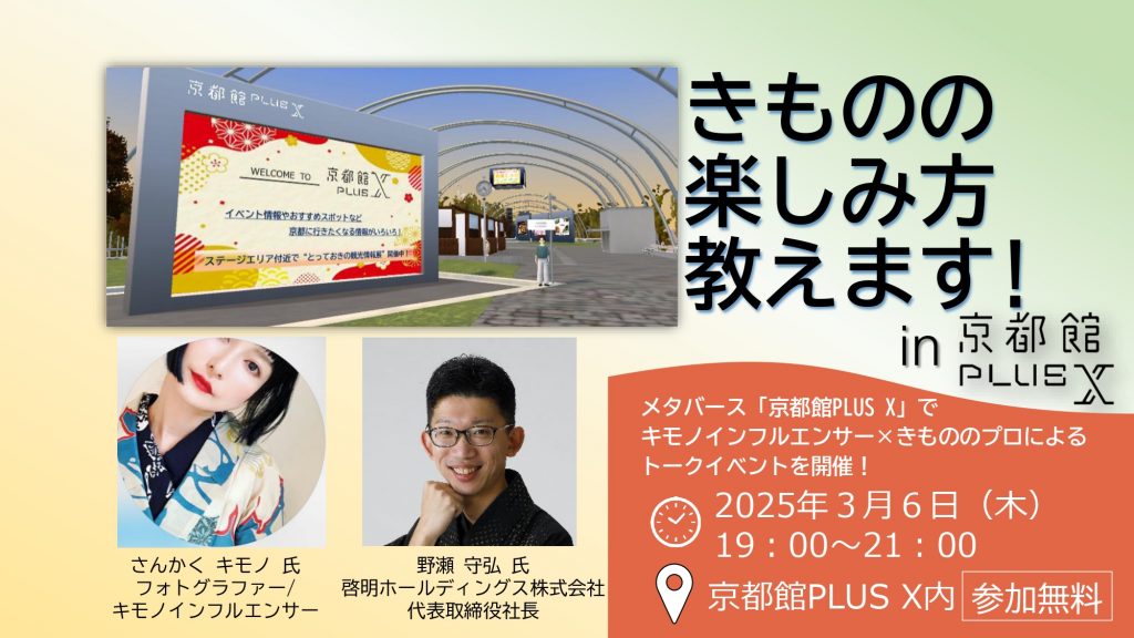 2025年3月6日(木)19時〜21時[メタバース「京都館PLUS X」でキモノインフルエンサー×きもののプロによるトークイベントの開催