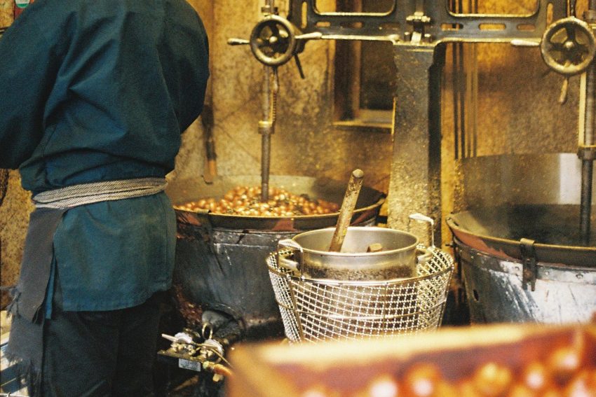 甘栗100年。剥いては食べ、食べては剥き、包装紙を折って作る屑入れは気がつけば満タン。 親指で栗の腹に割れ目を入れパカ! ベリ!コロ! っと裸の栗を一口、「美味い!もう一個」、 数個に1つくらい上手く実が剥がれないのが「今度こそ」と最終的にはより美しい栗を剥き出すことに心を奪われ、 美味しいそっちのけで最後の1つを迎える。