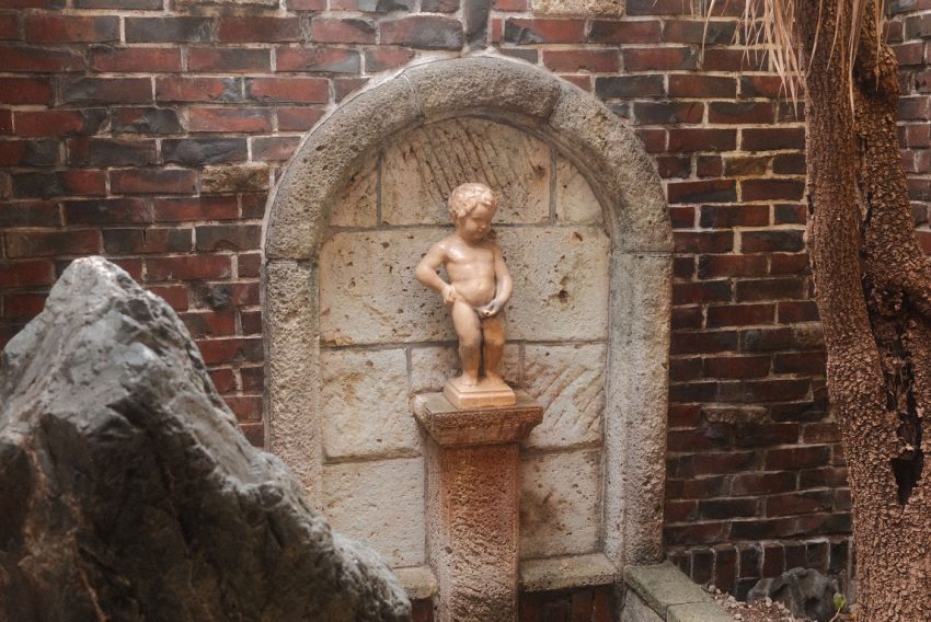 創業者が当時神戸まで買い付けに行ったり、レンガとかも自分で選んだりしていてみたいな感じで、柱も削ってこの模様になっています。そういうこだわりの強い方だったので、小便小僧やレンガ調の裏庭もそんな感じですね。