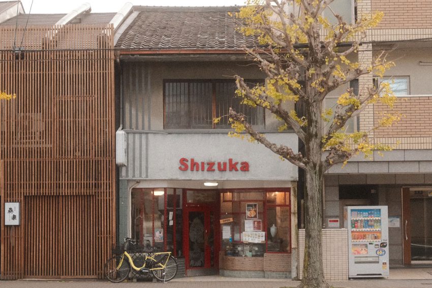 大通りに並ぶ建造物の中で、赤く目立つ店名「Shizuka」。ここは千本今出川で最も古いお店です。店内に足を踏み入れると、可愛らしいレトロな内装が迎えてくれます。創業当時から受け継がれてきた空間には、どこか懐かしく落ち着く雰囲気があります。